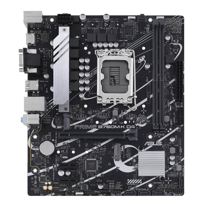 ASUS PRIME B660M-A D4-CSM ponuja elegantno zgradbo futurističnega videza s črno-belim zaključkom, oblikovalskimi elementi, ki jih navdihuje vesoljsko plovilo, kovinsko tablico z imenom in pokrovom tiskanega vezja.