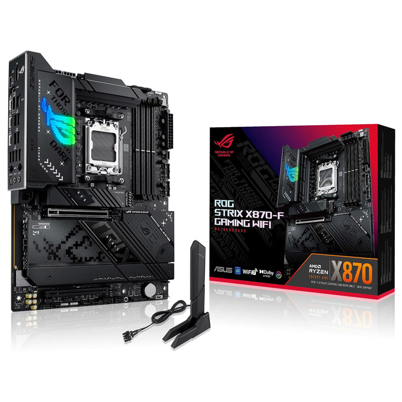 ROG Strix X870-F Gaming WiFi je zgrajen za prevlado s procesorji AMD Ryzen serije 9000 za namizne računalnike. Njegova napredna zasnova napajanja in rešitve AI zagotavljajo vrhunsko zmogljivost, medtem ko dvojna vrata USB4, WiFi 7 in hitre reže DDR5 zagotavljajo vrhunsko povezljivost. Ta matična plošča zagotavlja moč in hitrost, ki sta bistveni za elitno igranje iger in zahteve naprednih računalniških aplikacij z umetno inteligenco.