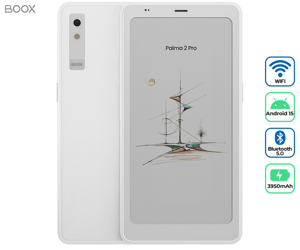 BOOX Palma2 Pro e-bralnik / tablični računalnik, 6.13", barvni zaslon, Android, 8GB+128GB, 4G LTE, WIFI, Bluetooth 5.1, GPS, 3950mAh baterija, USB Type-C, microSD, 16MP kamera, bel