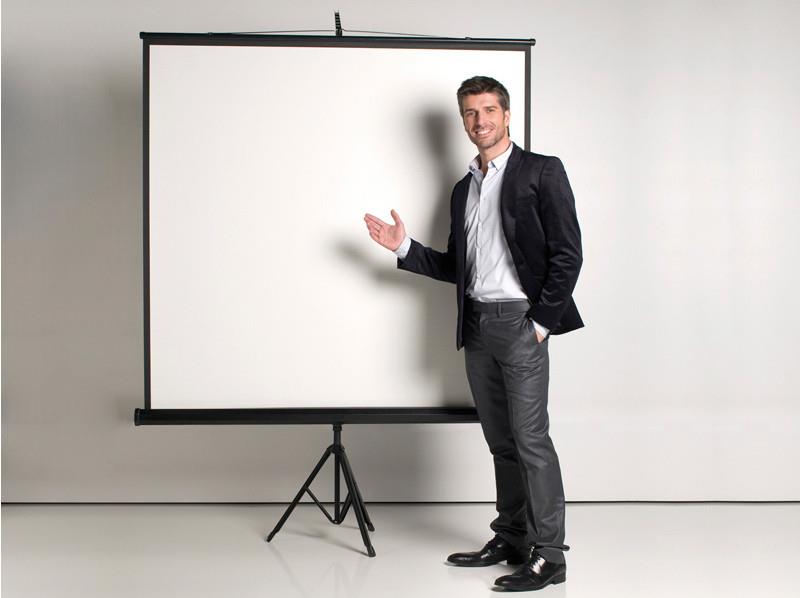 - briljantna bela matirana površina zagotavlja ostro in jasno sliko - robustno jekleno ohišje s kromiranim tripod podnožjem - hitra postavitev - zadržuje gorenje, odporen na plesen - naslon je mogoče ločiti od stojala