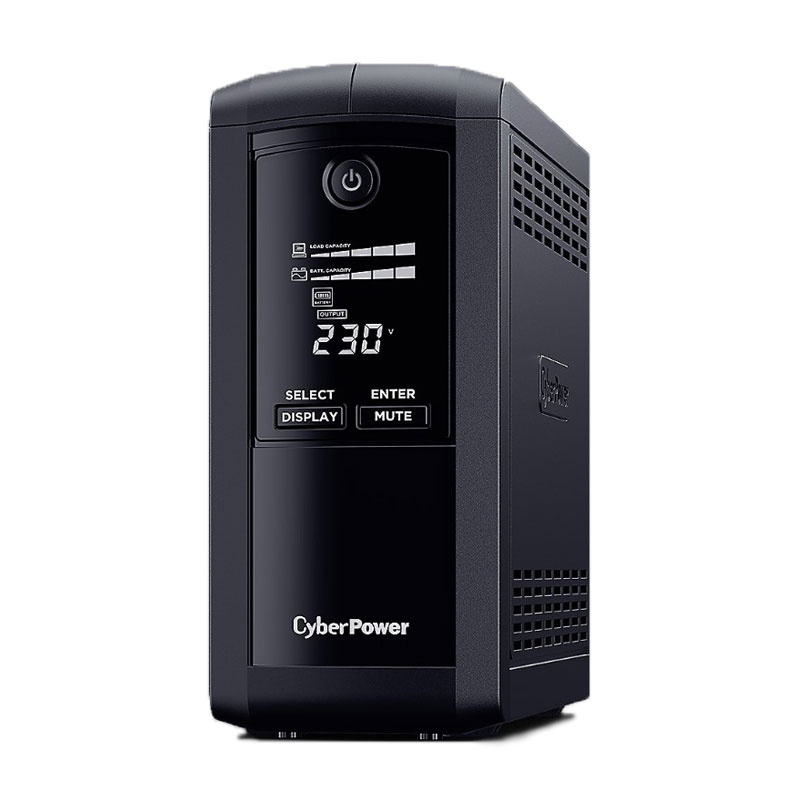 CyberPower VP1000EILCD ponuja domačim in pisarniškim uporabnikom zanesljivo rezervno baterijo ter ščiti pisarniške računalnike in druge elektronske naprave pred prenapetostmi, skoki, izpadi in drugimi izpadi električne energije. Zasnovan s tehnologijo GreenPower UPS™ za izboljšanje učinkovitosti delovanja in zmanjšanje porabe energije, lahko uporabniki uživajo v znatnih prihrankih pri stroških energije v primerjavi z običajnimi sistemi UPS. UPS zagotavlja samodejno regulacijo napetosti (AVR) za vzdrževanje varne napetosti za priključeno opremo.