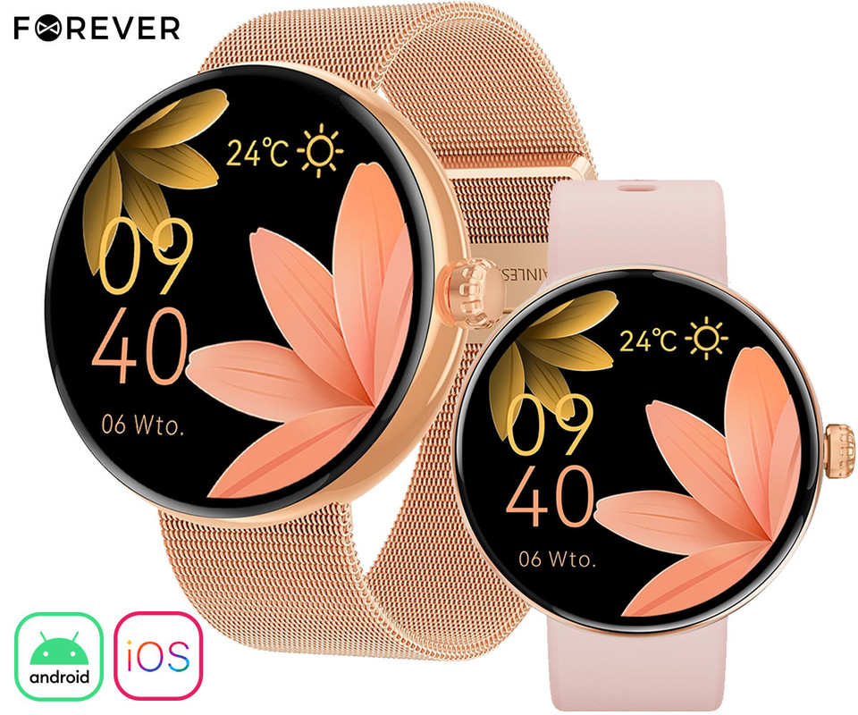 FOREVER ForeVive 5 SB-365 pametna ura, 1.3" AMOLED zaslon, Bluetooth, Android + iOS, klicanje, baterija, aplikacija, IP68, merjenje aktivnosti, analiza spanca, športni načini, roza zlata (Rose Gold)
