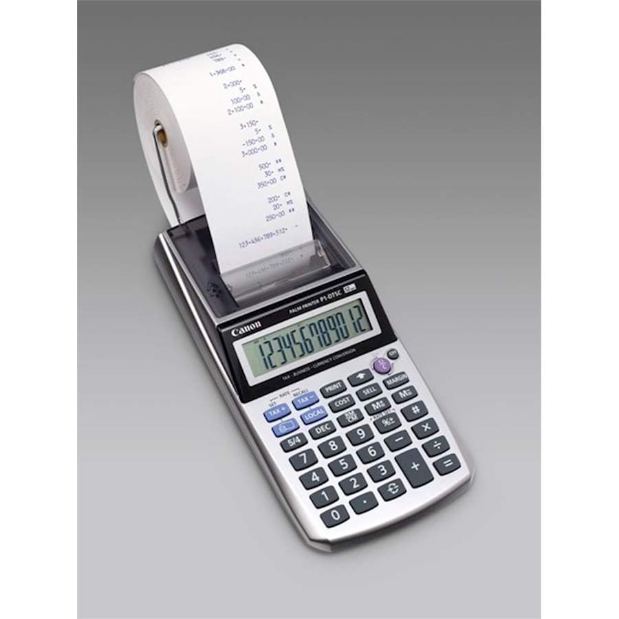 Canonov prenosni P1-DTSII kalkulator nudi odlične izpise, preprosto uporabo in malo vzdrževanja. Deluje na baterijo ali izbirno tudi na omrežno napajanje ter je majhen po velikosti in velik po zmogljivosti. Prednosti: Koristi • Prenosni 12-mestni kalkulator z izpisom na trak • Izračun davka, poslovne in valutne funkcije • Velik LCD zaslon in tipkovnica • Zunanje in notranje shranjevanje papirja • Baterijsko in omrežno napajanje (dodatni adapter AD-11) • Indikator prazne baterije
