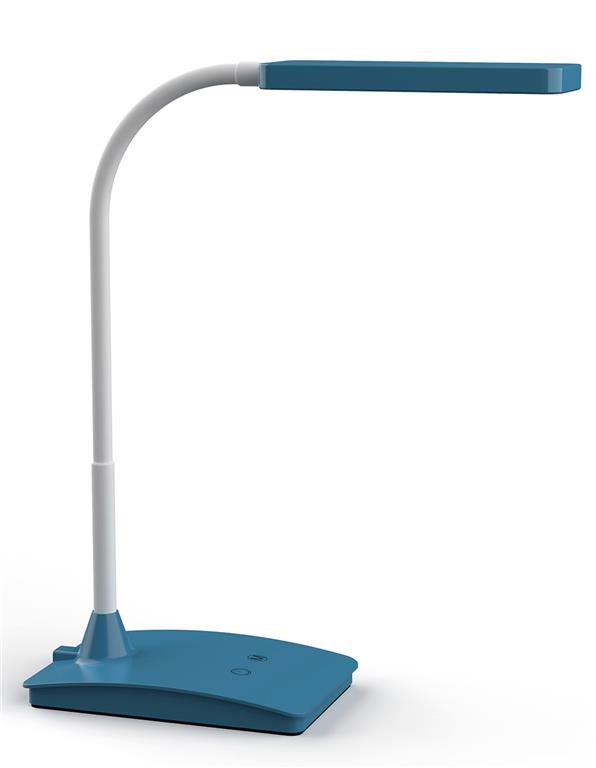 - namizna LED svetilka - najnovejša LED tehnologija - 3 stopnje nastavitve moči osvetlitve in 3 stopnje nastavitve barve svetlobe - osvetlitev: 1.360 lux na 35 cm razdalje - barva svetlobe: 3.000 K (topla bela) - razred energijske učinkovitosti: D (spekter A do G) - življenjska doba: 50.000 h - material: glava - plastika, roka - kovinska, podstavek - plastika z obtežitvijo s podlogo za zaščito mize - stikali sta na podstavku - glava in roka se lahko vrtita in nagibata - dimenzije: glava 16 x 6 cm, roka 35,7 cm, podstavek 16,5 x 10,6 cm, višina 37,5 cm