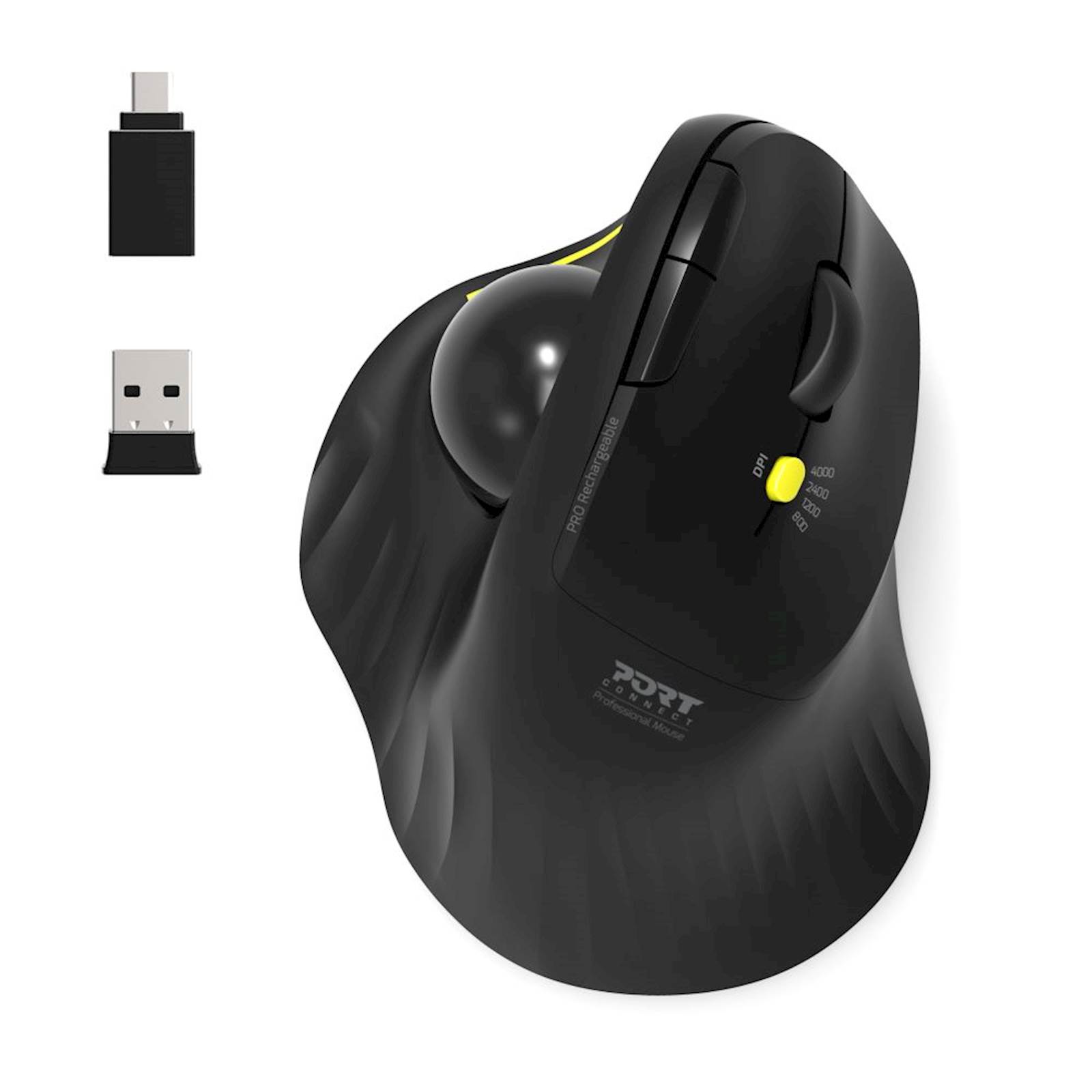 Miška PORT Trackball WL+BT, USB-A / C, polnilna, ergo, 5 gumbov, 4000dpi ergonomska