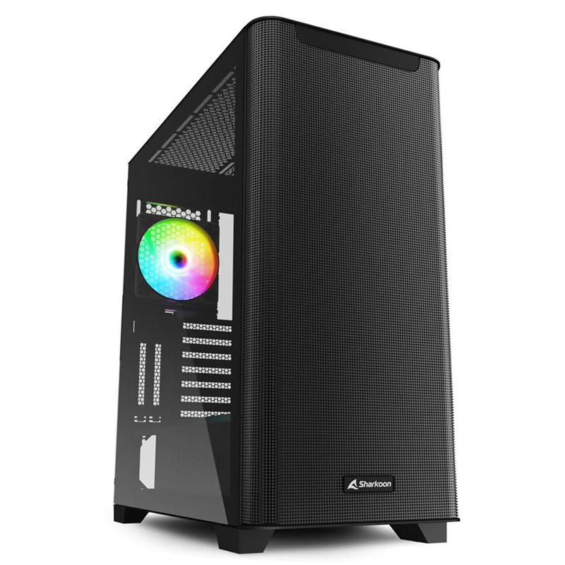 SHARKOON M30 RGB računalniško ohišje ima prefinjen izgled z veliko mrežasto sprednjo ploščo. V notranjosti je dovolj prostora za precejšnjo količino strojne opreme, ki omogoča izdelavo zmogljivih igralnih računalnikov ali zanesljivih pisarniških računalnikov. Temperatura v M30 RGB ostaja optimalna zahvaljujoč mrežasti sprednji plošči in možnosti namestitve 360 mm radiatorja za sprednjo ploščo ali pod zgornjo ploščo. Stranska plošča iz kaljenega stekla pa ponuja pogled v notranjost