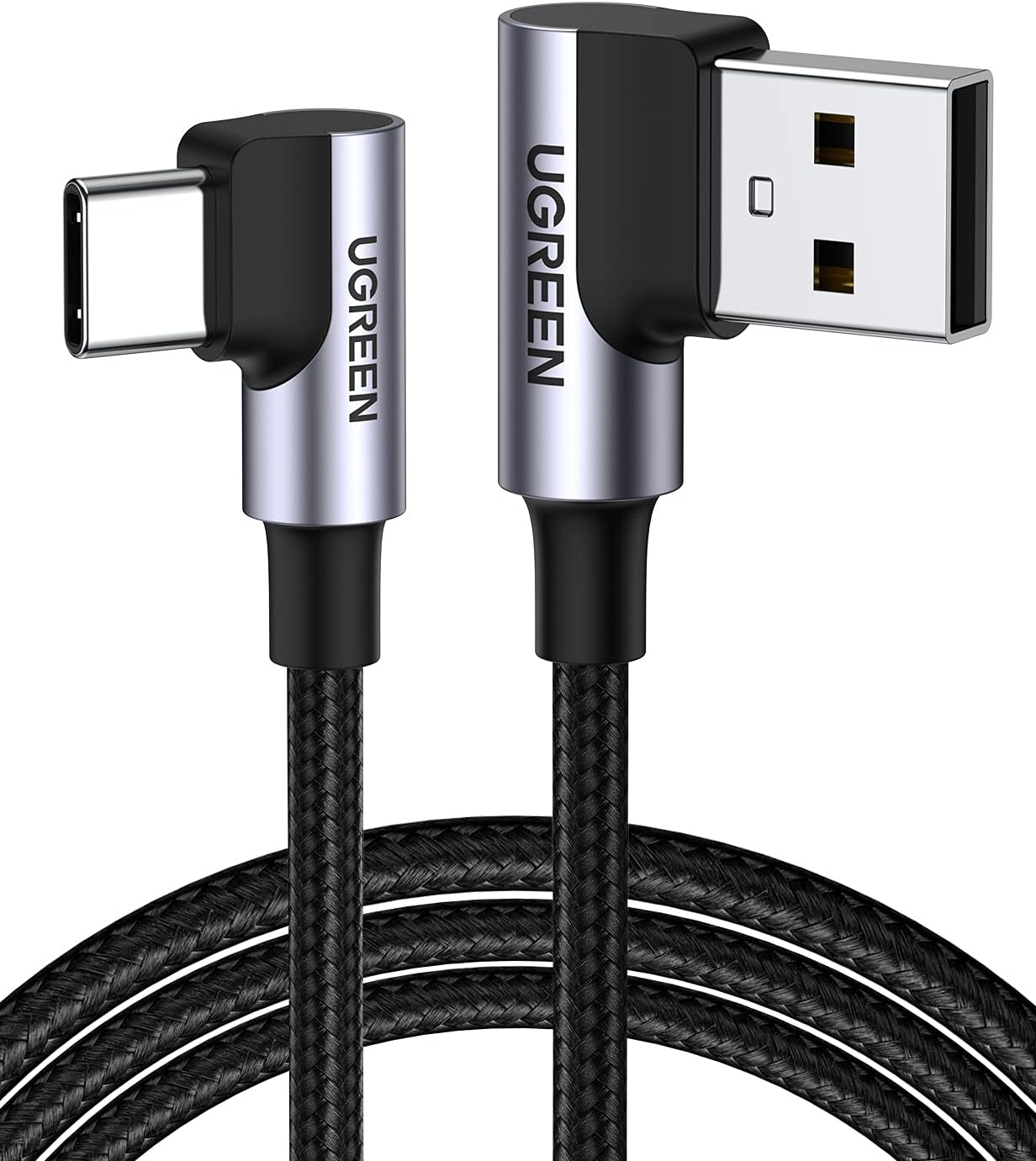 Kabel UGREEN USB v USB-C 90-stopinjski kabel za hitro polnjenje, združljiv z iPhone 15/15 Plus/15 Pro/15 Pro Max/Samsung Galaxy S10/S10+/Pixel 7/6a/LG G8/G7/Pixel/Switch itd.