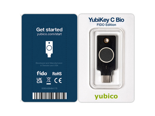 YubiKey C Bio omogoča varno in priročno multi-faktorsko prijavo brez gesla, z uporabo ključa in biometričnih informacij iz prstnega odtisa, s PIN kodo kot "rezerven" način.