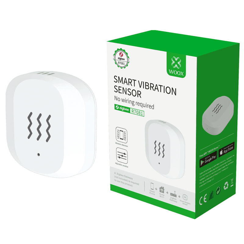 WOOX R7081 Zigbee senzor vibracij za zaščito vašega premoženja na enostaven način. Ob detekciji vibracije, nagiba ali padca, bo WOOX R7081 senzor sprožil sistem za opozorilo preko aplikacije WOOX ali pa preko WOOX R7051 (se kupi posebej) sirene, tako boste obveščeni ob vsakem dogodku. Senzor vibracij lahko namestite kamorkoli sami menite, da je to potrebno za varnost vašega doma.