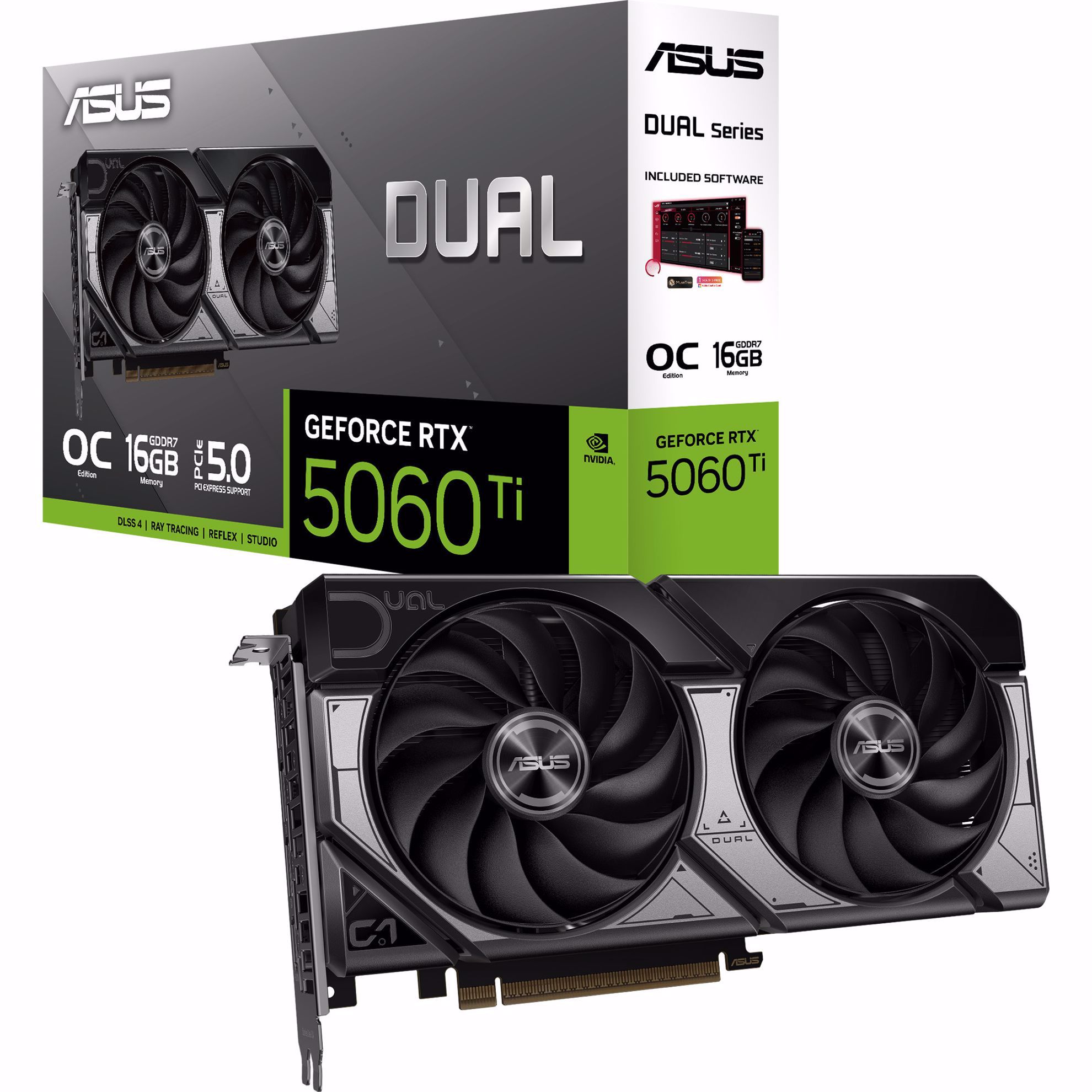 ASUS GeForce RTX 5060 Ti DUAL OC 16GB je vrhunska grafična kartica z grafičnim procesorjem NVIDIA GeForce RTX 5060 Ti. Zmogljive grafične kartice serije GeForce RTX 50 temeljijo na arhitekturi NVIDIA Blackwell in ponujajo nove ravni realizma v igrah, hitrosti in energijske učinkovitosti, skupaj s funkcijami umetne inteligence, kot so generiranje sličic (Frame Generation), generiranje več sličic (Multi-Frame Generation) in realistične izkušnje navidezne resničnosti (VR). Dodatne funkcije vključujejo sledenje žarkom v realnem času, rekonstrukcijo žarkov, NVIDIA Ansel s celovitimi orodji za ustvarjanje posnetkov zaslona v igri, NVIDIA G-SYNC, G-SYNC HDR, NVIDIA DLSS 4, ShadowPlay, Highlights, NVENC Gen 9 ter kodirnik in dekoder AV1. Grafični procesor na ASUS GeForce RTX 5060 Ti DUAL OC 16GB ima 4608 jeder CUDA. Njenih 16 GB pomnilnika GDDR7 ima 128-bitni pomnilniški vmesnik.