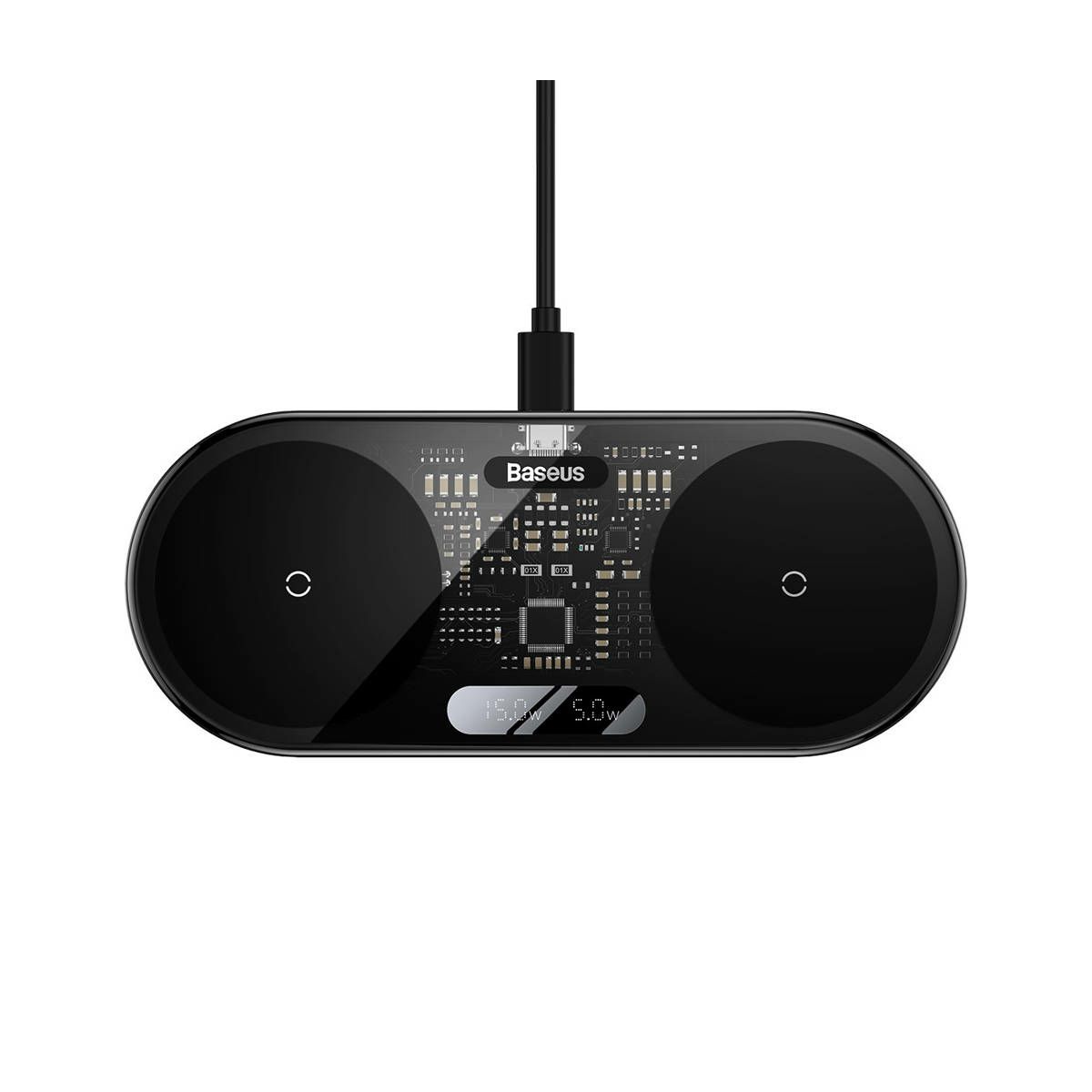 Uživajte v brezskrbnem polnjenju z Baseus brezžičnim dvojnim polnilcem z digitalnim LED zaslonom Zagotovite si brezhibno in elegantno polnjenje vaših najljubših naprav s tehnologijo Qi s pomočjo Baseus brezžičnega dvojnega polnilca z digitalnim LED zaslonom. Ta napredni polnilec združuje zmogljivost, varnost in stil, ki bo zagotovo popestril vaše polnilne izkušnje. Eleganten in funkcionalen design: Opremljen s prozorno ploščo, ki daje futurističen občutek, ter praktičnim digitalnim LED zaslonom, Baseus brezžični dvojni polnilec ne samo, da ustreza vašim polnilnim potrebam, ampak tudi dopolnjuje estetiko vašega prostora. Silikonska blazinica zagotavlja stabilen položaj polnilca na površini, medtem ko tanek in lahek dizajn omogoča preprosto shranjevanje in prenašanje, kjer koli že ste. Napredna funkcionalnost: S tem polnilnikom boste prihranili čas in energijo, saj lahko brezžično polnite do dve napravi hkrati, ne glede na to ali gre za Android pametne telefone, iPhone ali brezžične slušalke. Inteligentna tehnologija samodejno prilagodi optimalno moč polnjenja za vsako napravo, kar zagotavlja hitro in učinkovito polnjenje, ne da bi poškodovali baterije. Napredna zaščita: Baseus brezžični dvojni polnilec je opremljen z naprednim varnostnim sistemom, ki ščiti vaše naprave pred prenapetostjo, prekomernim tokom, prekomernim polnjenjem in elektromagnetnim poljem. Tako lahko polnite svoje naprave brez skrbi za njihovo varnost, kar zagotavlja dolgotrajno in zanesljivo delovanje. Široka združljivost: Z združljivostjo z napravami, ki podpirajo tehnologijo Qi, vključno s telefoni proizvajalcev, kot so iPhone, Huawei, Samsung, Xiaomi in drugi, ter brezžičnimi slušalkami in drugimi napravami, bo Baseus brezžični dvojni polnilec izpolnil vaše vsestranske polnilne potrebe. Vključeno v paket: Dual Qi brezžični polnilnik USB na USB-C kabel (1m) Uporabniški priročnik Specifikacije: Barva: Črna Vključen kabel: Da Dolžina kabla: 100 cm Vmesnik: Tip C Vhodni Tok: 9V/2A, 12V/2A Teža: približno 92 g Združljivost: Qi omogočene naprave Moč: 20 W VIDEO