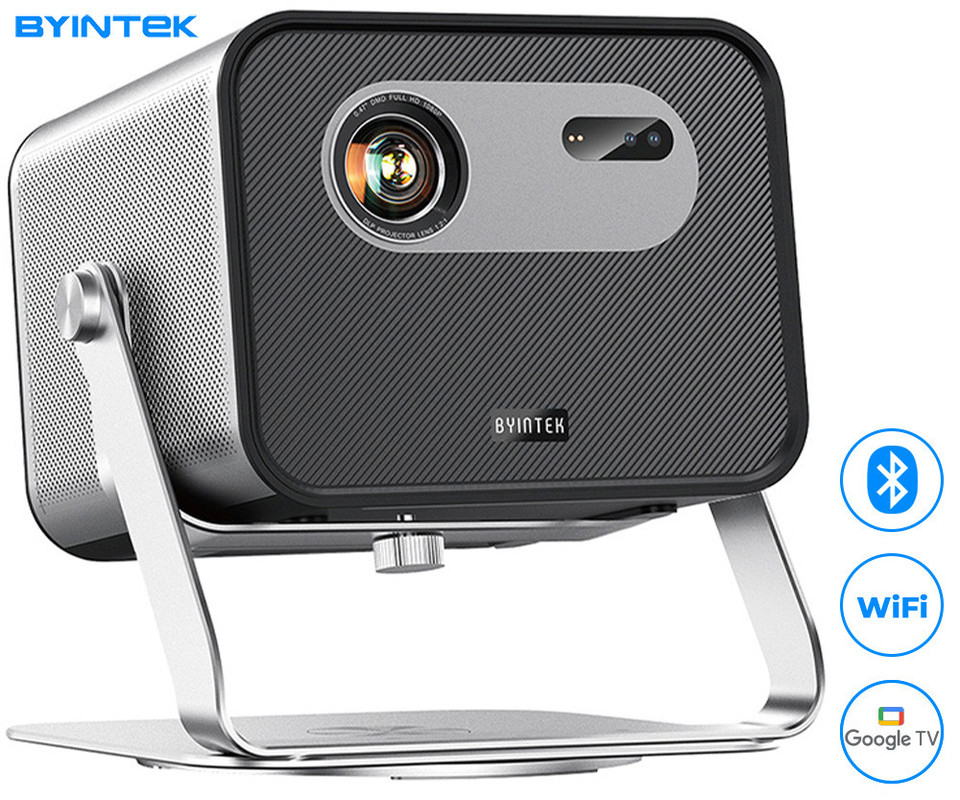 BYINTEK UFO R90 MAX prenosni LED DLP projektor, GoogleTV, Dual WIFI, Bluetooth, 2200 ANSI lumnov, samodejni fokus, STEREO zvočniki, stojalo, max 4K UHD, USB / HDMI / AUX / RJ-45