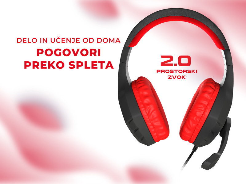 GENESIS ARGON 200 gaming naglavne slušalke, 2.0 STEREO zvok, mikrofon, tehnologija Noise Reduction, nadzor glasnosti, pleten kabel, mini jack 3.5mm, črno rdeče