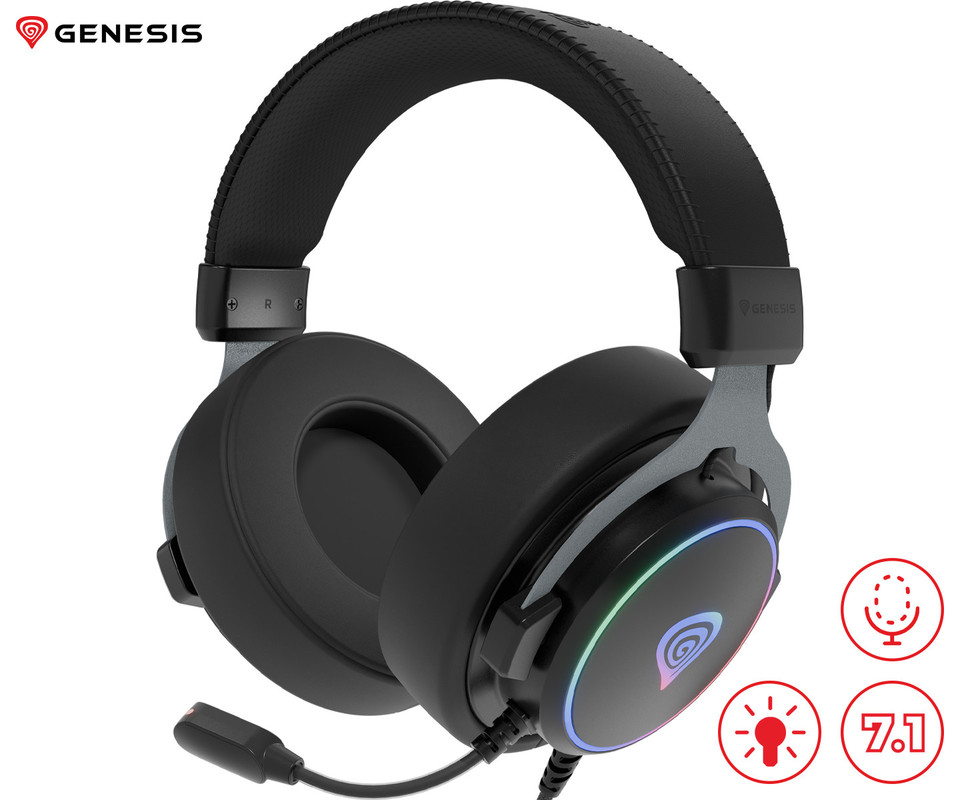 Spoznajte Genesis Neon 764 - žične naglavne slušalke, zasnovane za vse, ki imajo radi moderen dizajn, dobro kakovost zvoka in atraktivno RGB LED osvetlitev.