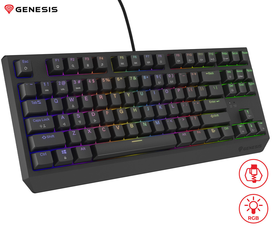 GENESIS THOR 230 TKL gaming mehanska tipkovnica, žična, RGB LED osvetlitev, Hot-Swap tehnologija, Anti-Ghosting, Outemu Red stikala, spomin, programska oprema, Plug & Play, F1-F12, črna