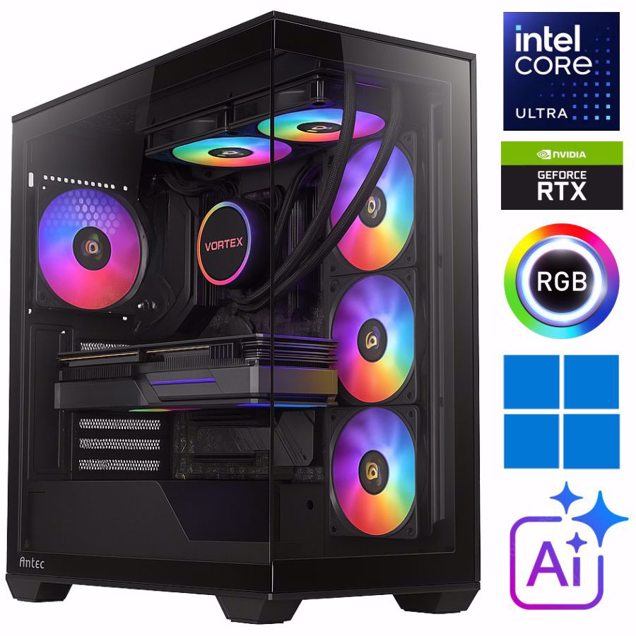 Gamersko ohišje je zaradi RGB ventilatorja in RGB led-ic in stranske plošče iz kaljenega stekla prava paša za oči. Računalnik ima že naložen operacijski sistem Windows 11.
