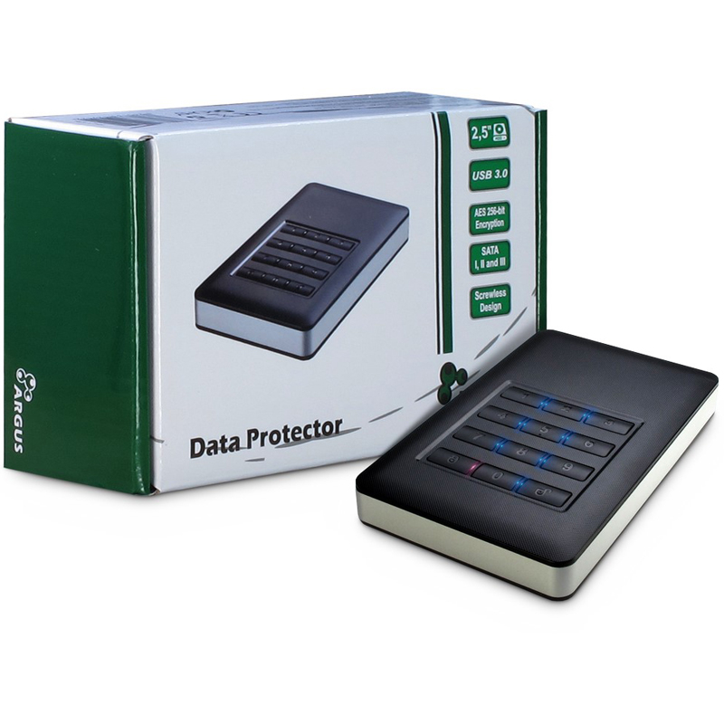 Integrirano AES 256-bit šifriranje strojne opreme in priročna tipkovnica vam omogoči zaščito vašega diska z zaščitno kodo, ki jo ustvarite sami. Vaš disk bo dostopen le v kombinaciji Argus GD-25LK01 in kode.