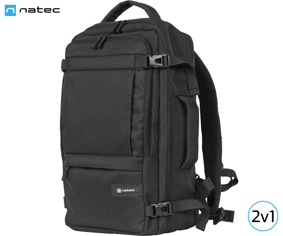 Natec CAMEL LITE univerzalni 2v1 nahrbtnik, za prenosnike do 15.5", 19L, potovalni, nastavljiv, trpežen, 10 žepov, raztegljiv, vodoodporen, Trolley sistem, črn