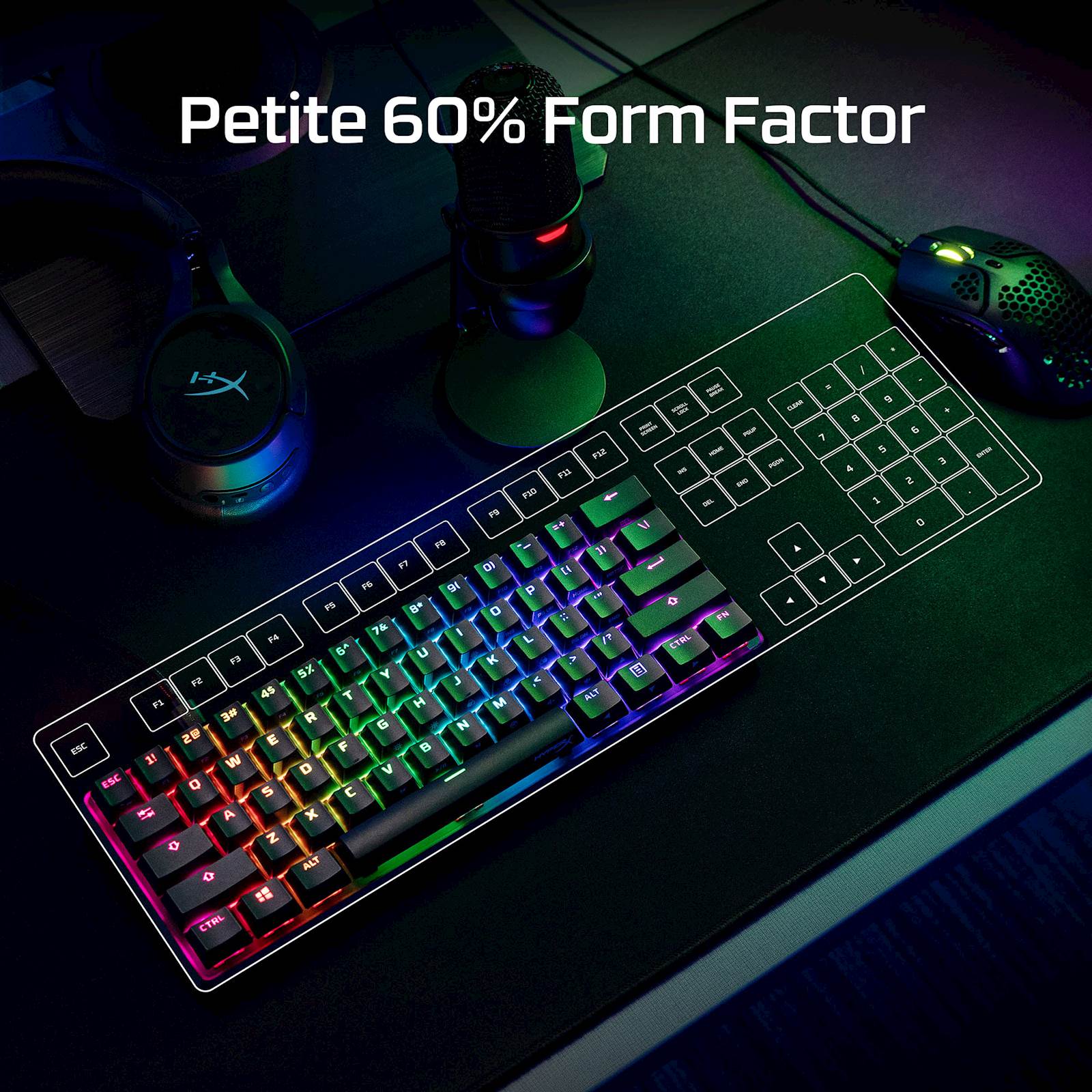 HyperX Alloy Origins™ 60 je vzdržljiva in izjemno prenosljiva tipkovnica, ki vključuje samo 60 % velikosti, zato nudi več prostora za velike premike z miško. Predstavlja vzdržljivo ohišje iz aluminija in zanesljiva stikala HyperX, uravnotežena za hitrost in zmogljivost. Na vnaprej nameščenih tipkah PBT z dvema funkcijama so vidne sekundarne funkcije, da lahko hitro poiščeš poljubno dodatno funkcionalnost, ki jo potrebuješ. Tipkovnico še dodatno prilagodi z makri, osvetlitvenimi profili in programsko opremo HyperX NGENUITY.