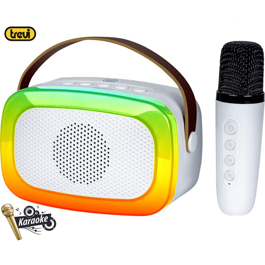 Vstopite v svet zabave in energije s Trevi XR8A01 MINI PARTY karaoke kompletom, ki vsebuje brezžični zvočnik s polnilno baterijo in brezžični mikrofon kompaktnih dimenzij, ki ju lahko nosite s seboj in z njima naredite zabavo kjerkoli želite!