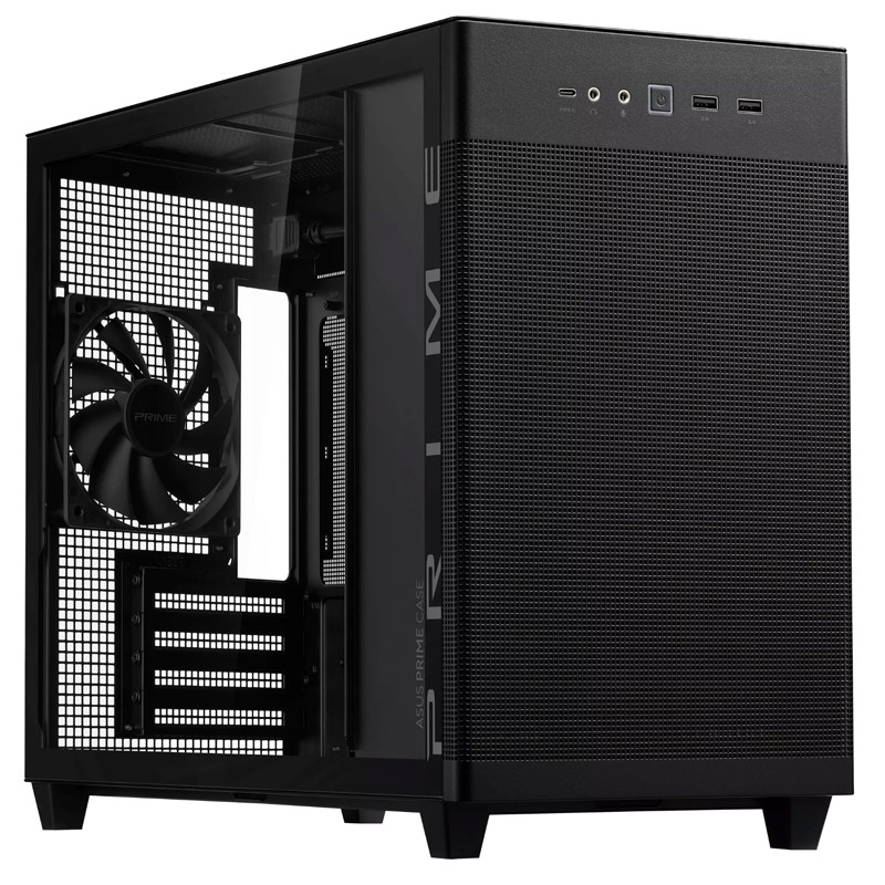 ASUS Prime AP201 je elegantno 33-litrsko ohišje MicroATX s stranskimi ploščami brez orodja in navidezno filtrirno mrežo, s podporo za 360 mm hladilnike, grafične kartice do dolžine 338 mm in standardne napajalne enote ATX.