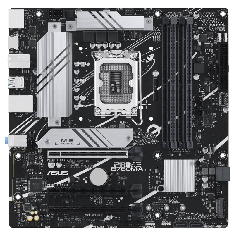 • Intel® B760 (LGA 1700) mATX osnovna plošča s PCIe 4.0, DDR5, dvema M.2 režama, Realtek 2.5Gb Ethernet, DisplayPort, dvojni HDMI™, SATA 6 Gbps, zadnji USB 3.2 Gen 2, sprednji USB 3.2 Gen 1 Type-C®, Aura Sync