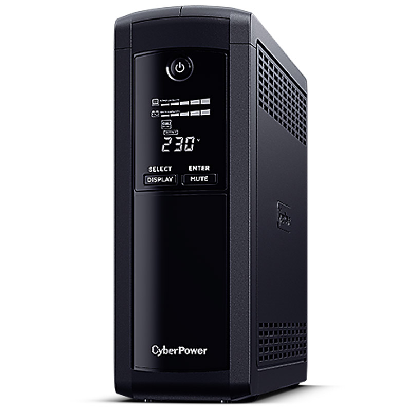 CYBERPOWER VP1200EILCD-IEC 1200VA 720W USB-HID brezprekinitveno napajanje zagotavlja zaščito in moč v majhnem ekonomičnem paketu.