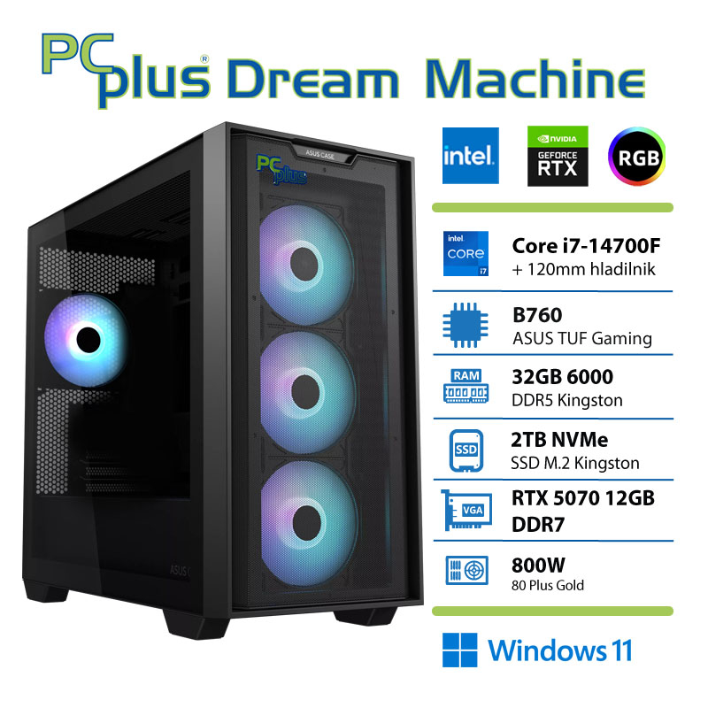 PCPLUS Dream machine Intel I7-14700F 32GB 2TB NVMe SSD RTX 5070 12GB Windows 11 Home gaming namizni računalnik