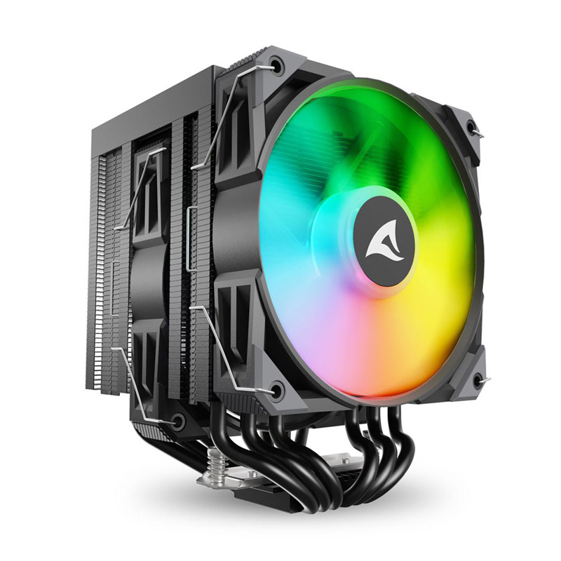 Sharkoon A60 RGB je eleganten dvojni stolpni zračni hladilnik za procesor, opremljen s 6 toplotnimi cevmi, ki zagotavljajo učinkovit prenos toplote iz procesorja na hladilnik. Poleg elegantnega učinka neskončnega ogledala je hladilnik procesorja zasnovan tako, da tudi v najbolj zahtevnih aplikacijah nenehno vzdržuje optimalno temperaturo. To je mogoče zahvaljujoč dvema natančno nastavljivima 120-milimetrskima ventilatorjema, združljivosti z najnovejšimi procesorskimi vtičnicami in odlični TDP 260 W.