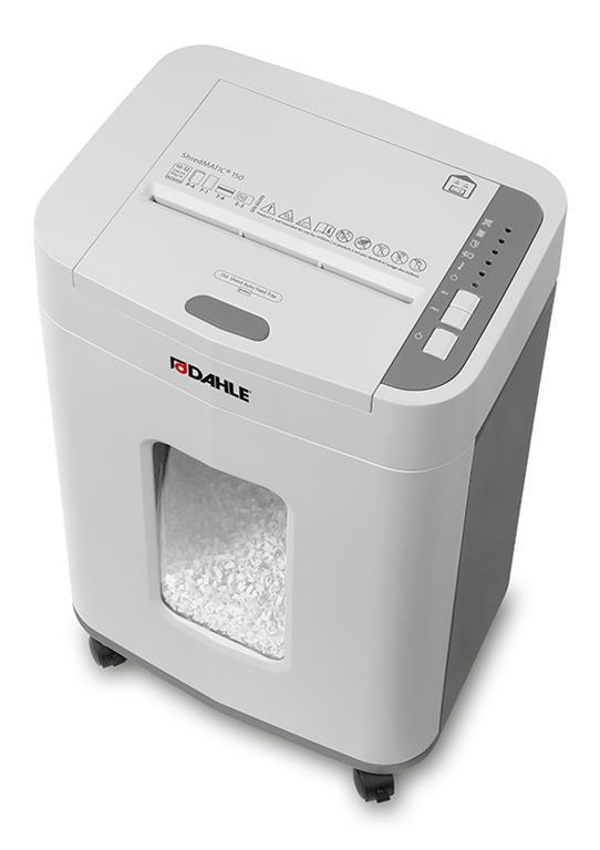 - stabilno ohišje iz nelomljive plastike - praktična avtomatska funkcija vklopa/izklopa s fotocelico - priročna avtomatska funkcija vrtenja nazaj očisti odprtino, če vanjo vstavimo preveč papirja - avtomatski izklop motorja, če je koš poln ali so vrata uničevalnika odprta - elektronski prikaz polnosti koša - avtomatski podajalnik za do 150 listov 80gsm papirja - zaščita pred pregrevanjem s svetlobnim opozorilom - 4 kolesa za lažje prestavljanje - uničuje kreditne kartice - izvlečni koš - za svoje delovanje ne potrebuje oljenja - 2 leti garancije na delovanje - čas delovanja >=60 min, čas ohlajanja 15 min - širina odprtine 220 mm - kapaciteta 14 listov A4 80 gsm - kapaciteta pri avtomatskem uničevanju: 150 listov A4 80 gsm - razrez 4 x 12 mm - stopnja varnosti P-4 / F-1 / T-4 / E-3 - prostornina zbiralnika 25 l - mere 537 x 354 x 298 mm