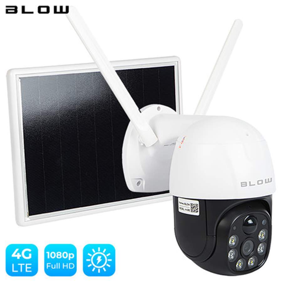 IP kamera BLOW H-392, brezžična, 4G-LTE, 1080p, PTZ, vrtljiva, nočno snemanje, senzor gibanja, aplikacija, baterija + solarni panel