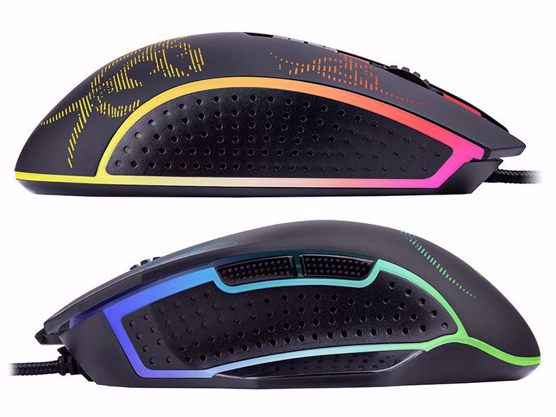 Preverite vse barvne kombinacije, ki jih daje mavrična RGB osvetlitev. Mehanizem tihega klika in zanimiva osvetlitev bosta vsako nočno igranje popestrila. E-športni značaj miške ter ergonomska in trpežna konstrukcija zagotavljata udobje med dolgimi igrami.