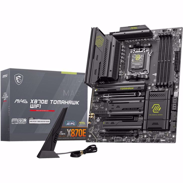 MSI MAG X870E TOMAHAWK WIFI temelji na čipsetu AMD X870E in podpira procesorje AMD za podnožje AM5. Ima štiri reže DDR5 za do 192 GB RAM-a. Dodatne funkcije MSI MAG X870E TOMAHAWK WIFI vključujejo eno režo PCIe 5.0 x16, eno režo PCIe 4.0 x16 (x4 pasovi), eno režo PCIe 3.0 x16 (x1 pasovi) in eno režo PCIe 3.0 x1. Poleg tega MSI MAG X870E TOMAHAWK WIFI ponuja 8-kanalni zvok, gigabitni LAN vmesnik, WiFi 7, Bluetooth 5.4, štiri vrata SATA3, štiri reže M.2 in različne vrata USB.