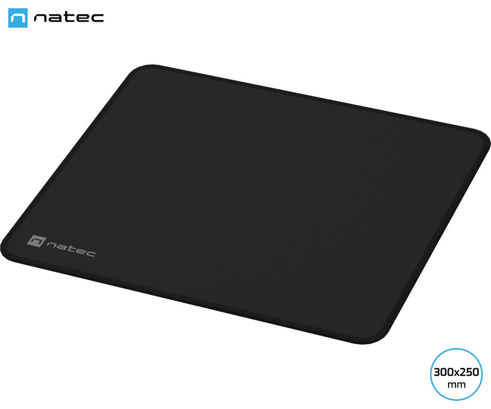 Natec COLORS M podloga za miško, 300x250mm, vodoodporna, gladka površina, protizdrsna podlaga, prešiti robovi, črna (Obsidian Black)