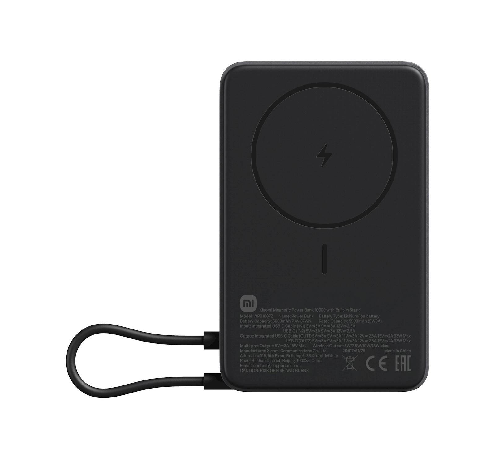 Xiaomi Magnetni Power Bank 10000mAh s stojalom, indikator baterije, 33W izhod, Črn